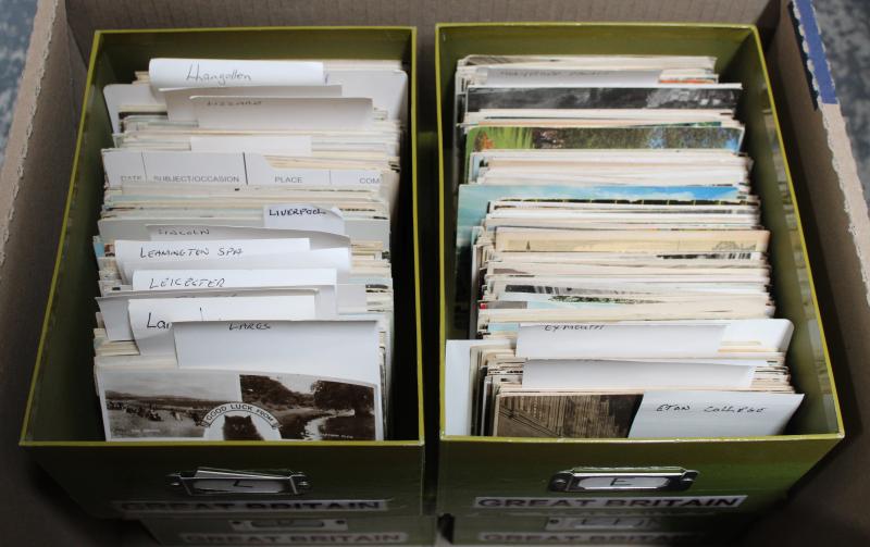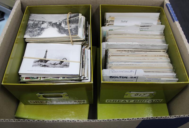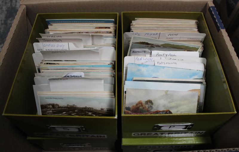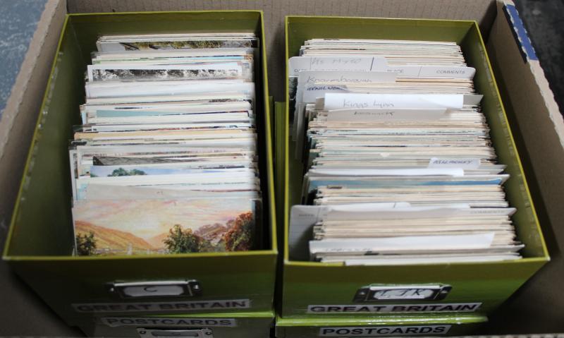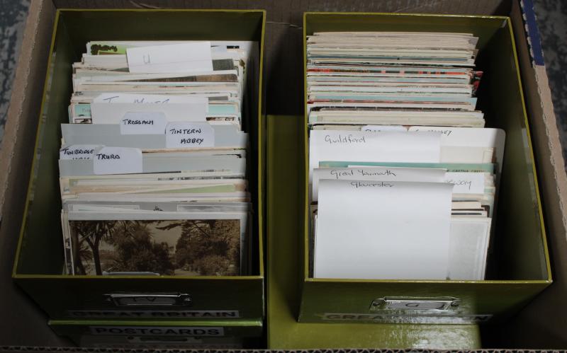 A veritable library of topographical subjects in 24 file boxes partly sorted by town with myriad excellent cards from Undivided