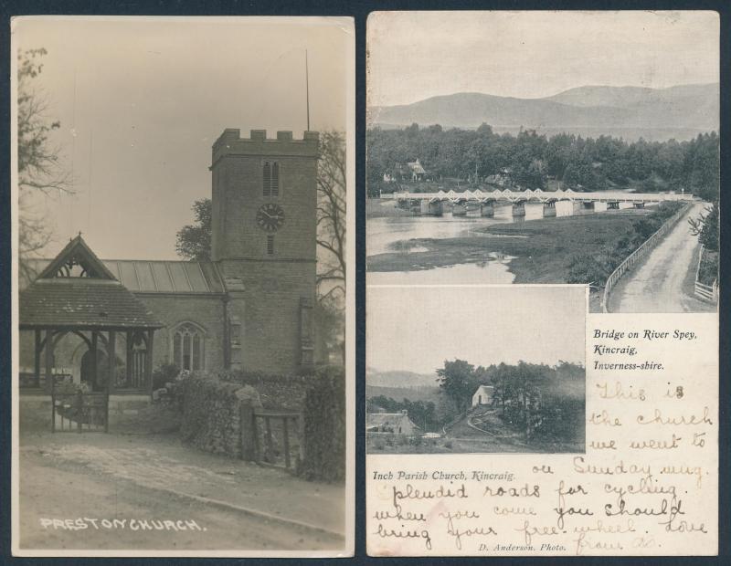 Aberayron, Barmouth, Knarseboro, Filey, Flamborough, Seaton, Thanet, Shrewton, Mousehole (pronounced "mooz/ll"!), Bamburgh, Lynton, etc, also for Exeter Cathedral, St George's Chapel at Windsor & the delightfully named Stoke Poges Church, the second