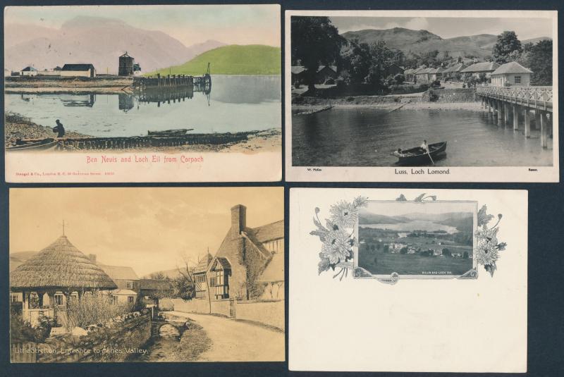 of Wight x98 including villages & many of Carisbrooke Castle; Scottish Highlands x48 mostly in lochs plus some Iona, Skye, Shetlands, etc; Scilly/Ness x6; Anglesey x6; and others x18; mostly used with some postmark content. Generally fine to very