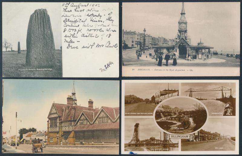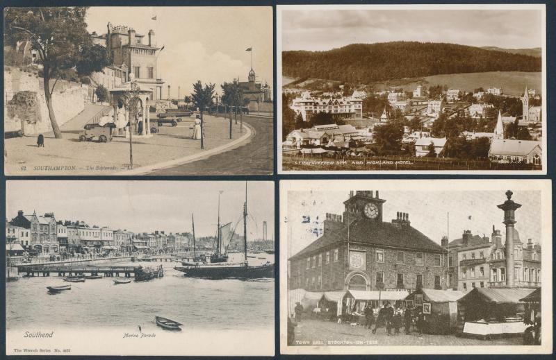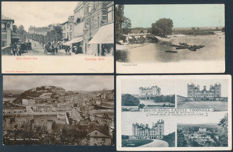 POSTMARKS: All-different array on topographical picture postcards predominantly from Golden Age to 1930s plus some to early 1960s