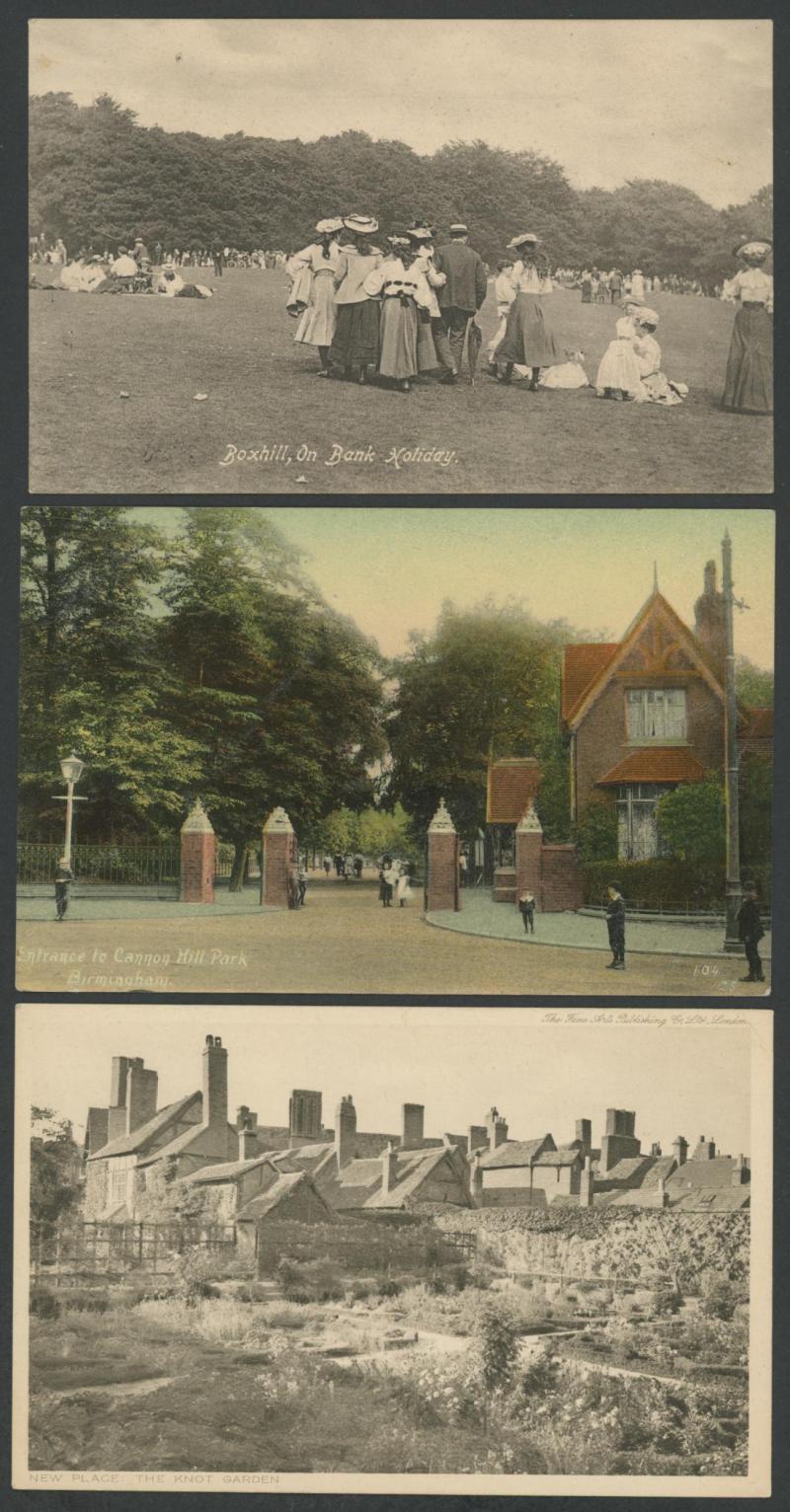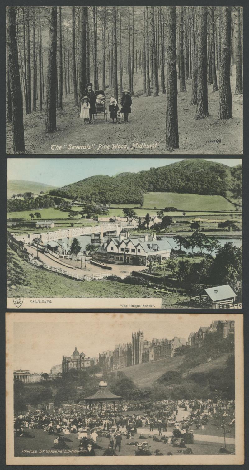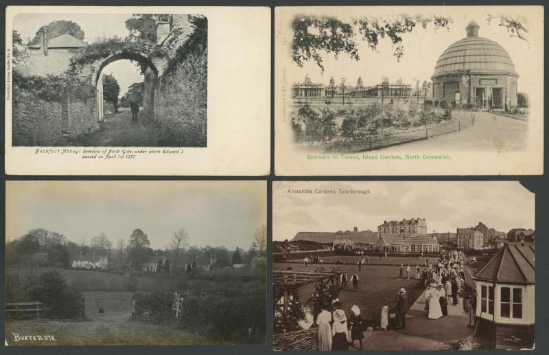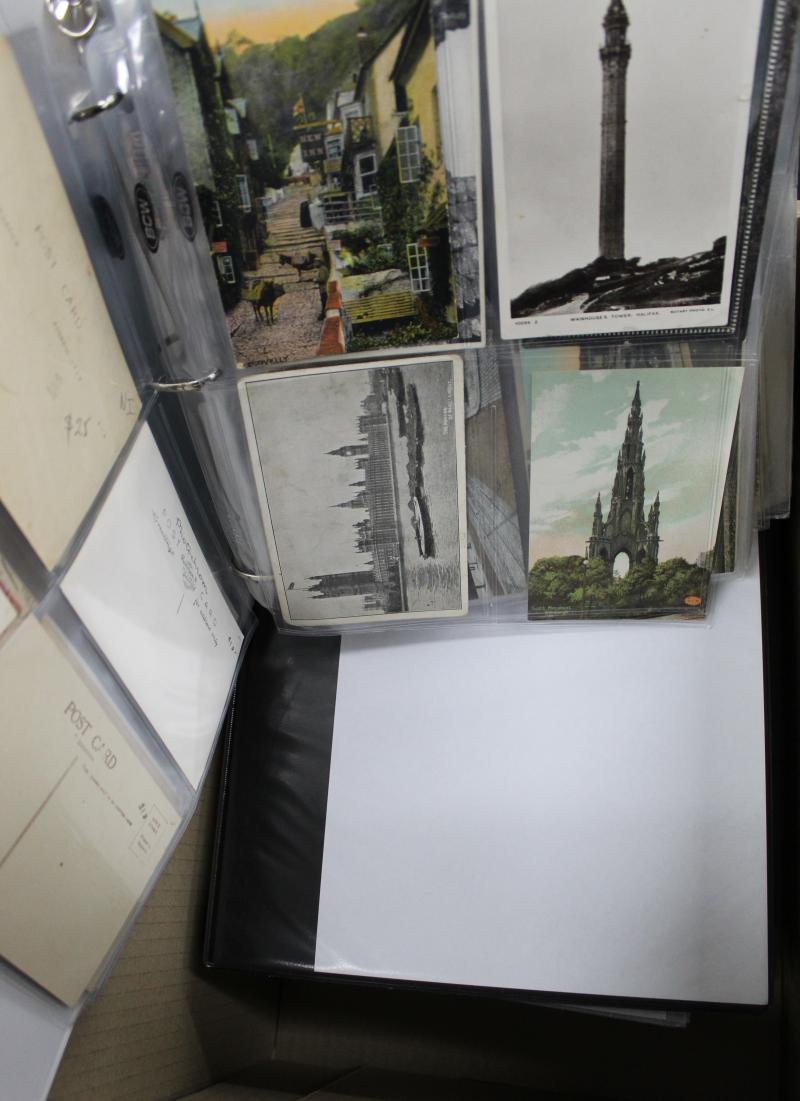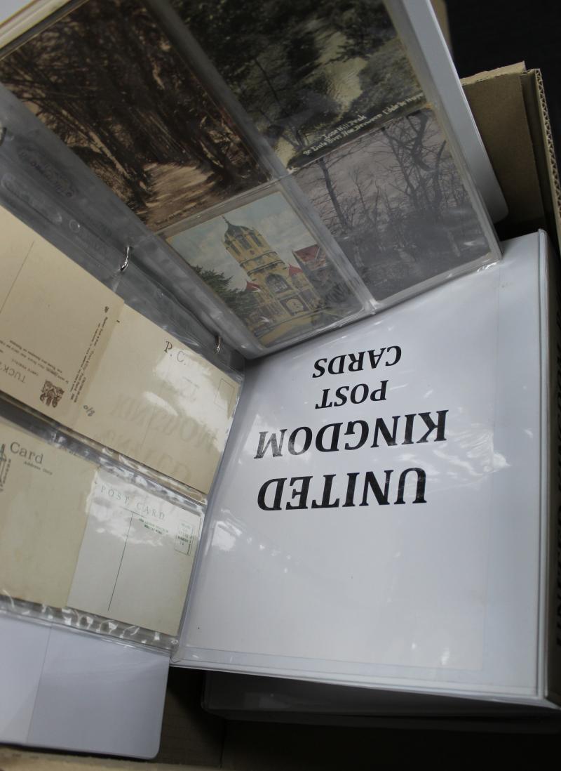 Carton of mostly pre-WWII topographicals in albums with some Undivided Backs & beautiful artist cards, beauty spots, parks,