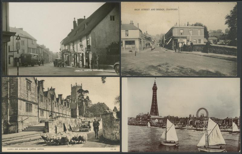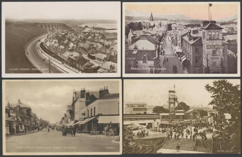 Backs to the 1930s plus interesting material from the 1950s to the early 1960s. Towns, villages and hamlets galore plus iconic cityscapes, impressive buildings and so on. Lots of Scotland and Wales and some Ireland, but no London. Far too much to do