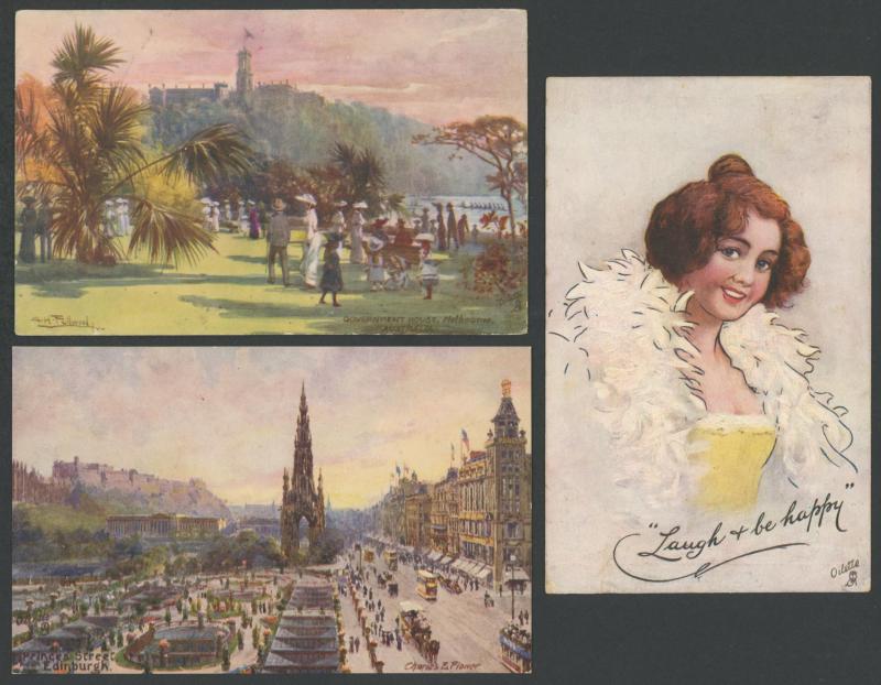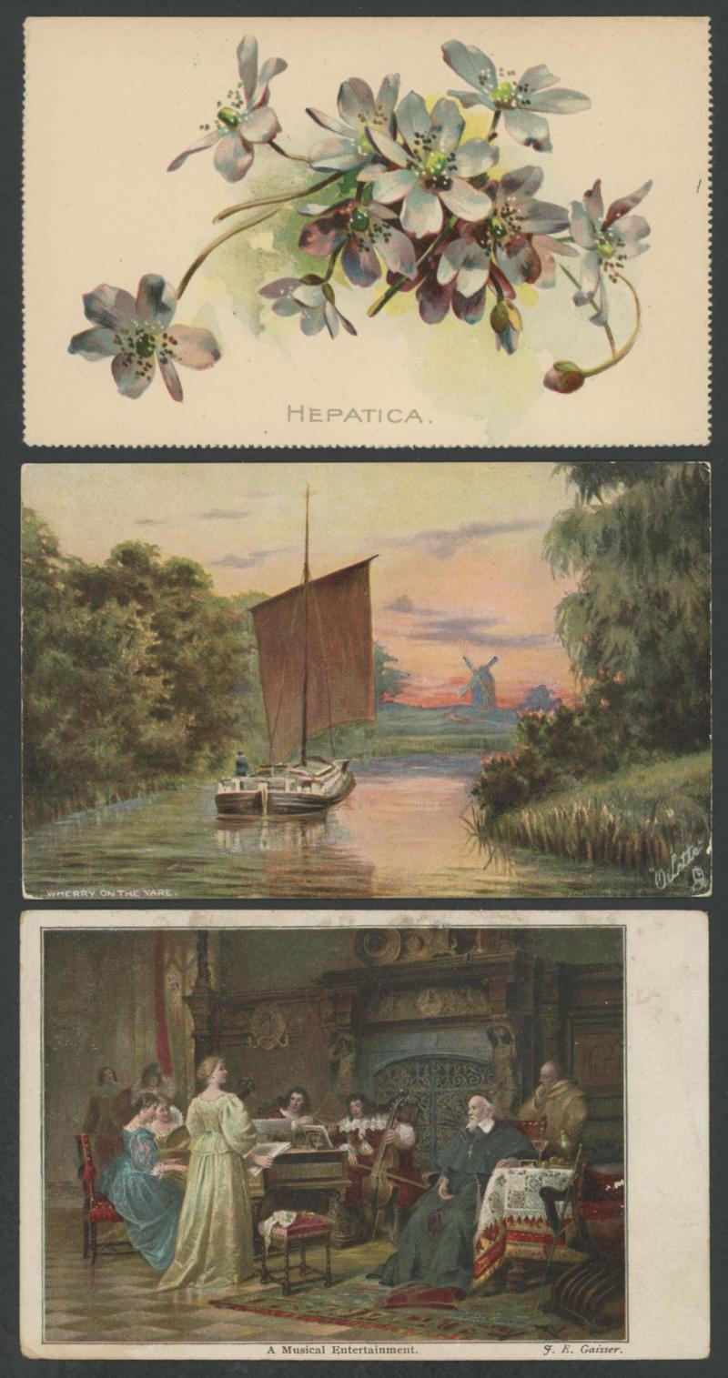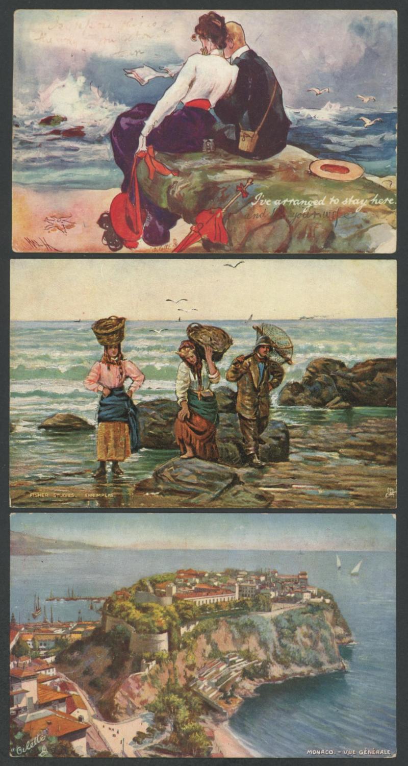 Quantity of Raphael Tuck cards from numerous different series from artist cards to photo-mechanical types plus textured cards and