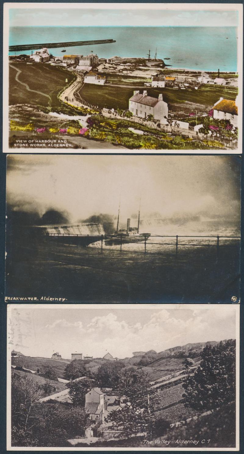 Man, Isles of Scilly and Channel Islands including Alderney, Herm and Sark, plus some real photo types, artist cards and multi-views, some postmark interest including superb large-part 'SCALLOWA[Y]/SHETLAND', 'LERWICK/SHETLAND', 'SEAVIEW/RYDE',