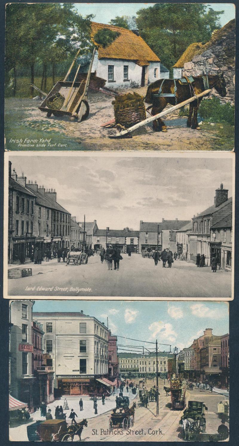 photo-mechanicals of small towns & villages, activities, costumes, Irish songs, condition variable but many are fine to very fine, with some postmark interest. Weighs 6kg.