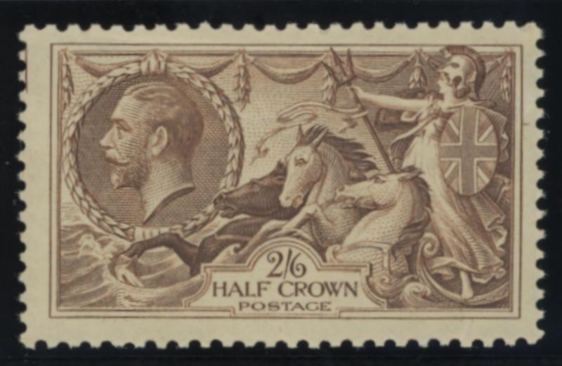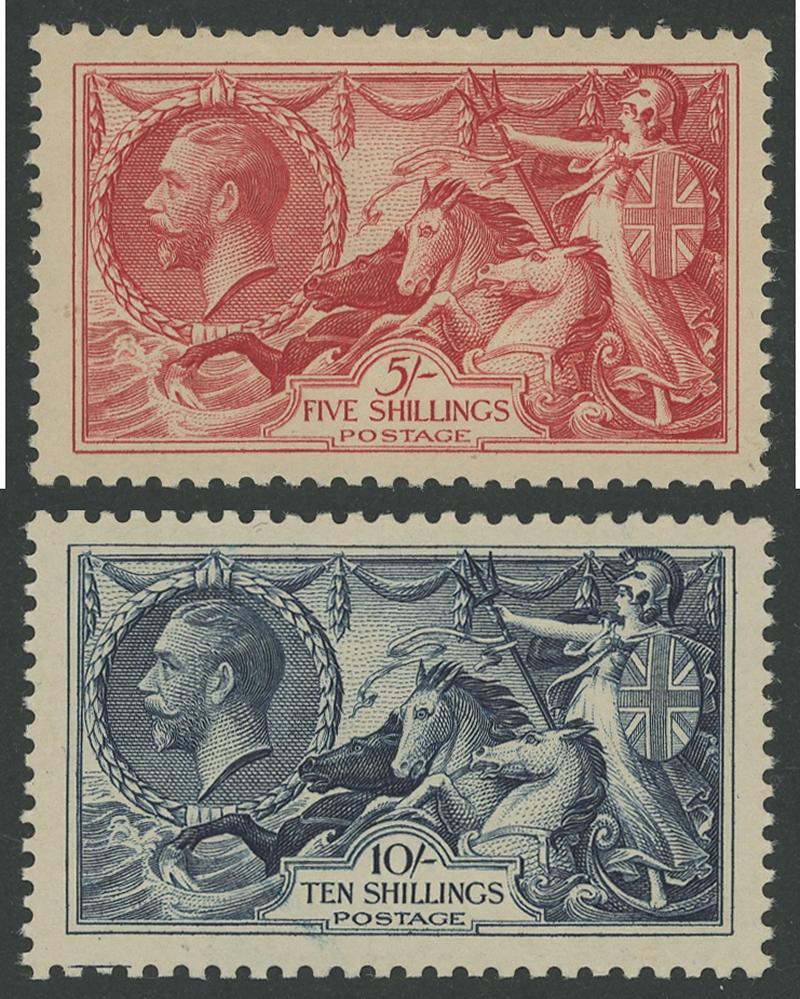 1934 Re-Engraved Seahorses 2/6d brown, 5/- red & 10/- indigo SG 450-452, all well-centred & unmounted, Cat £1100.