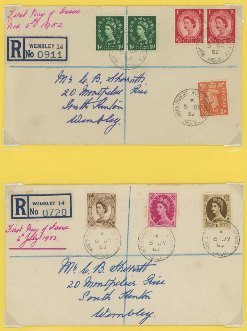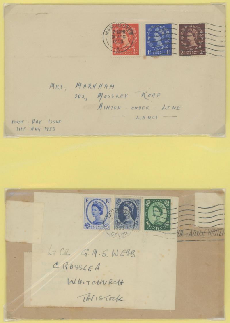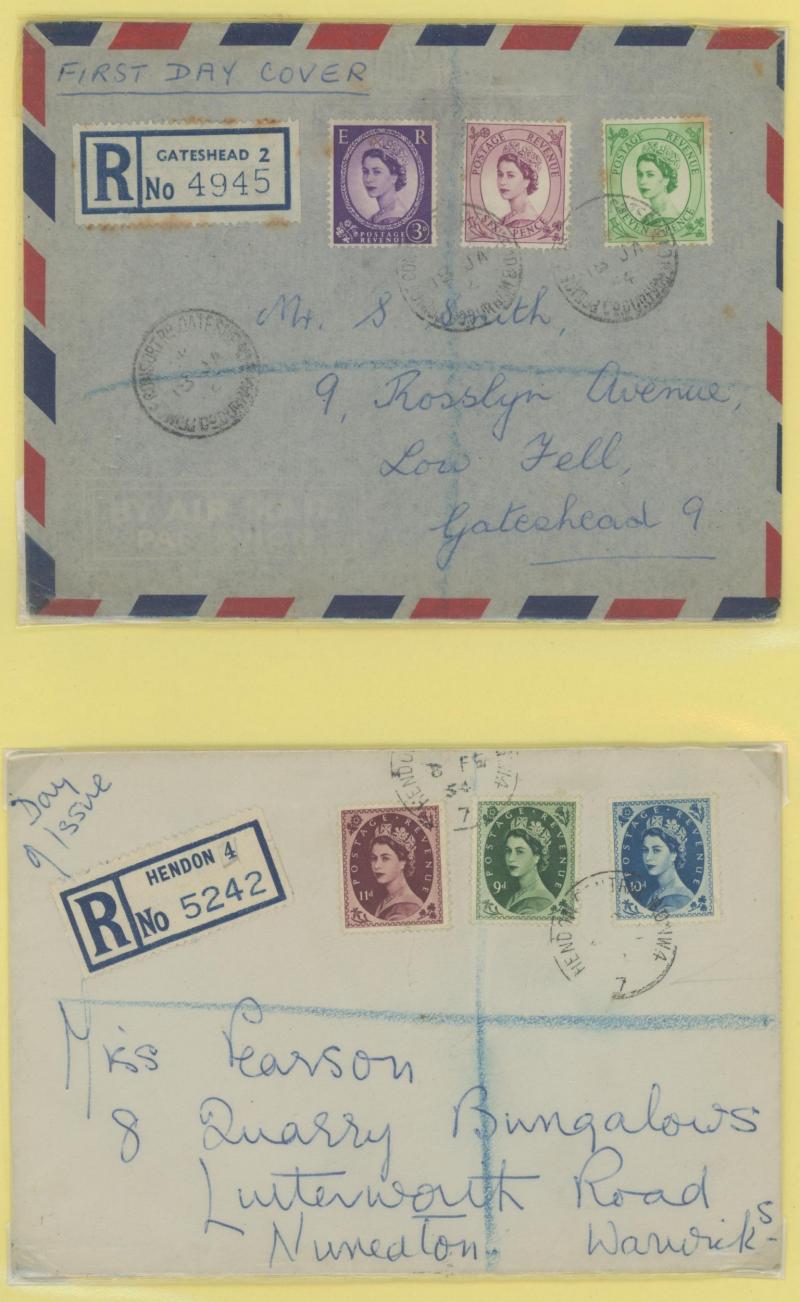 FIRST DAY COVERS: QEII Definitives collection from 1952 Wildings complete set (16) on six covers (Cat £720+) plus extras some