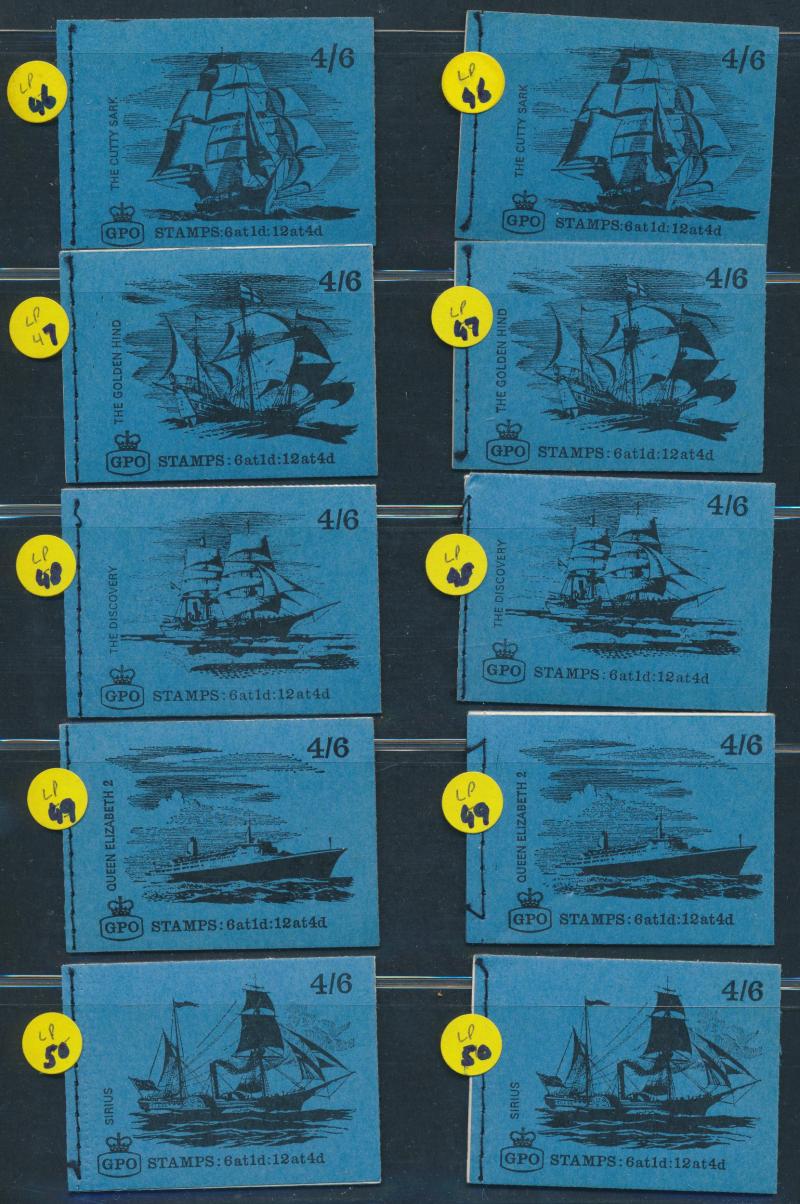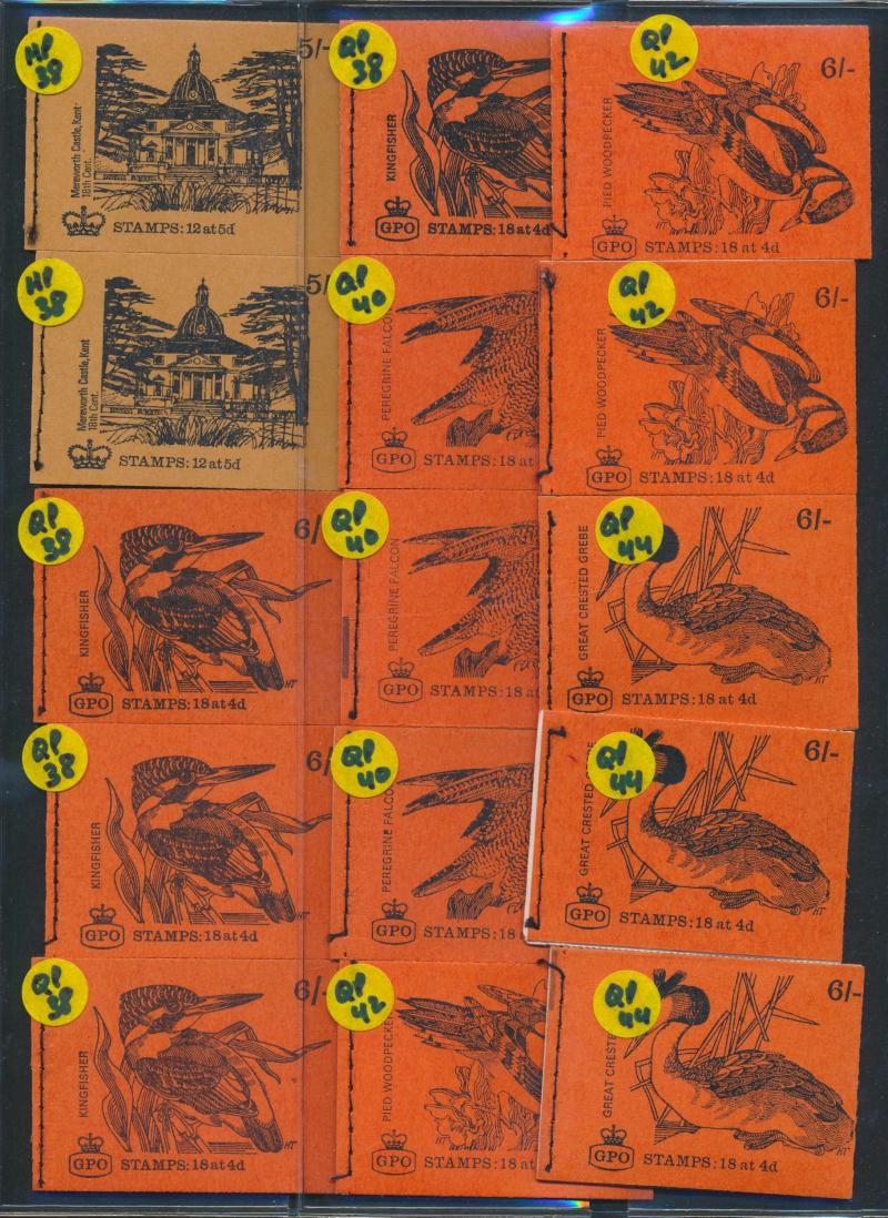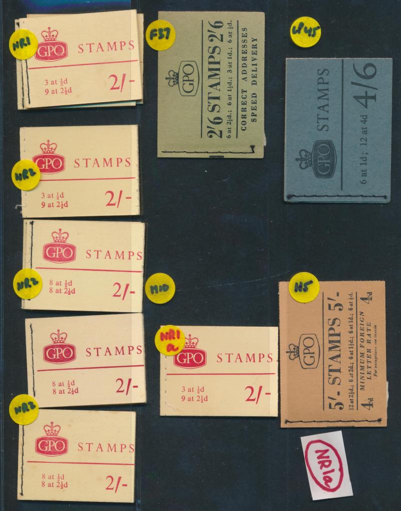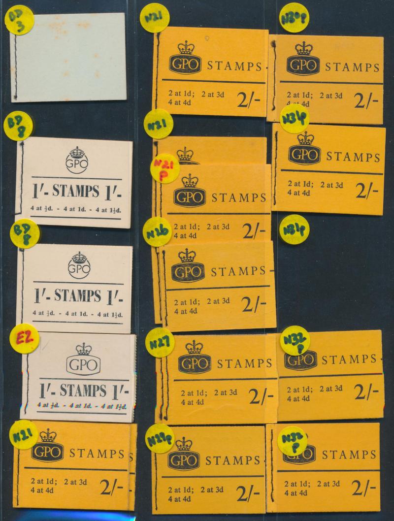 1952 1/- Crown (B8) x2, QEII Wildings from 1/- Crown (E2), an extensive range of 2/- booklets (40+ with some light duplication) plus 2/6d (F37), 3/- (H10), 5/- (H5; mixed with KGVI) & 10/- (X15p), Pre-Decimal Machins 4/6d Ships covers x27, 5/-