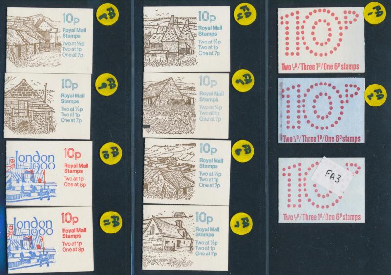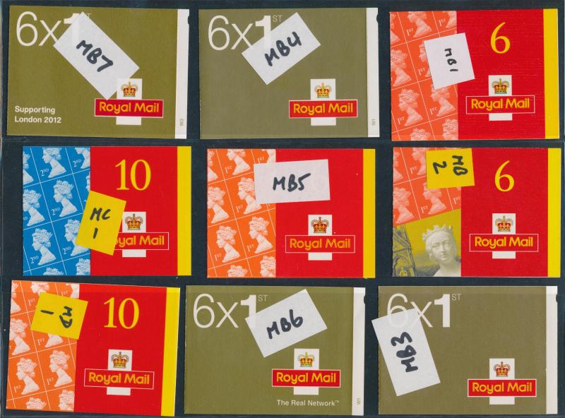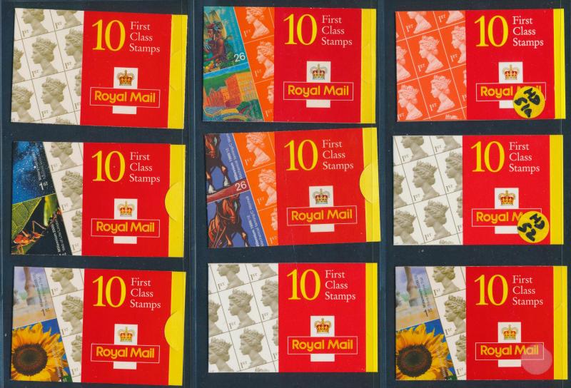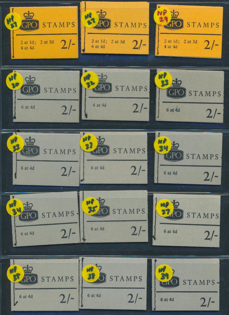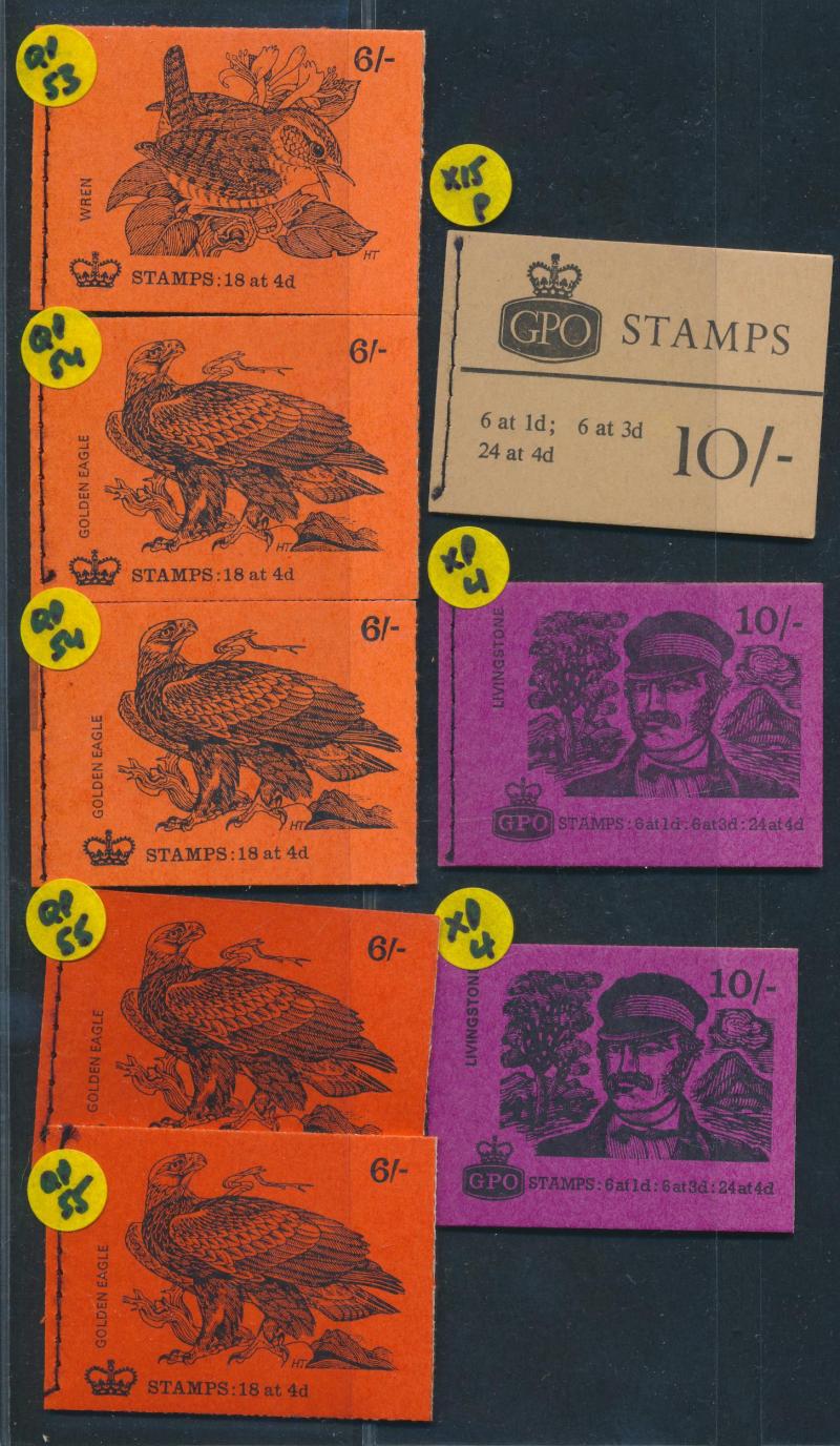 1952 1/- Crown (B8) x2, QEII Wildings from 1/- Crown (E2), an extensive range of 2/- booklets (40+ with some light duplication) plus 2/6d (F37), 3/- (H10), 5/- (H5; mixed with KGVI) & 10/- (X15p), Pre-Decimal Machins 4/6d Ships covers x27, 5/-