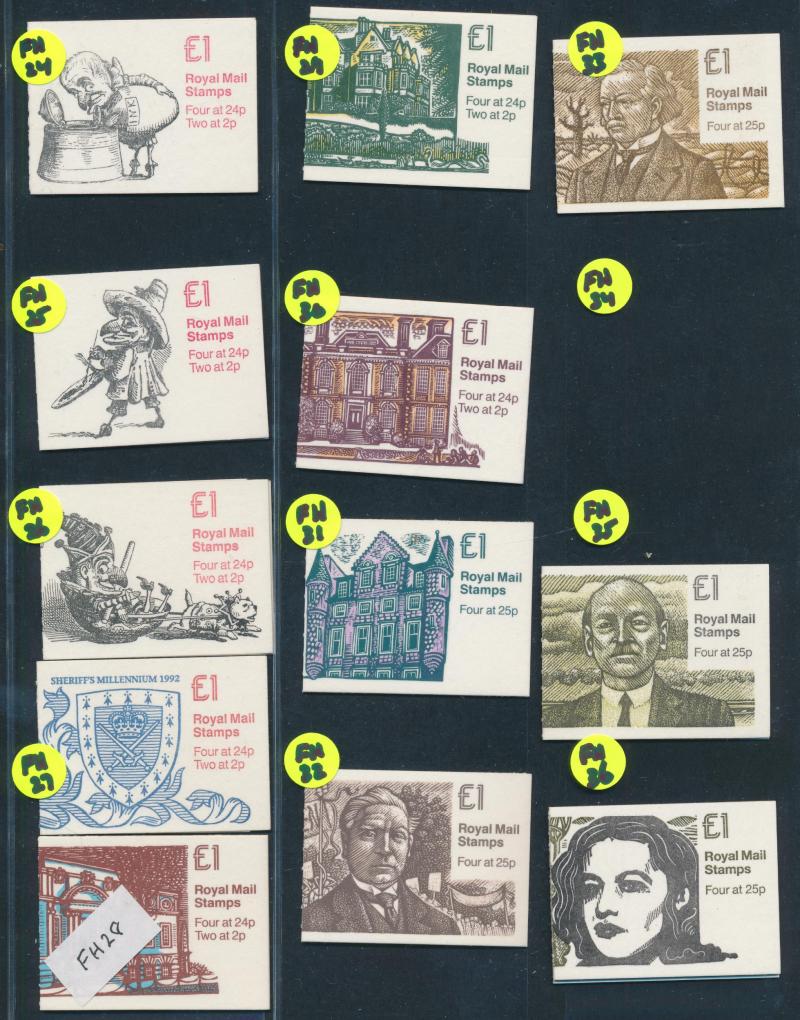 Homes/Philympia covers x36, 6/- Birds x34 and 10/- Explorers x14, then a similar but larger range of Decimals to early 2000s including Barcode & Self-Adhesive booklets, First & Second Class, Greetings, Christmas, etc, all catalogue numbers are