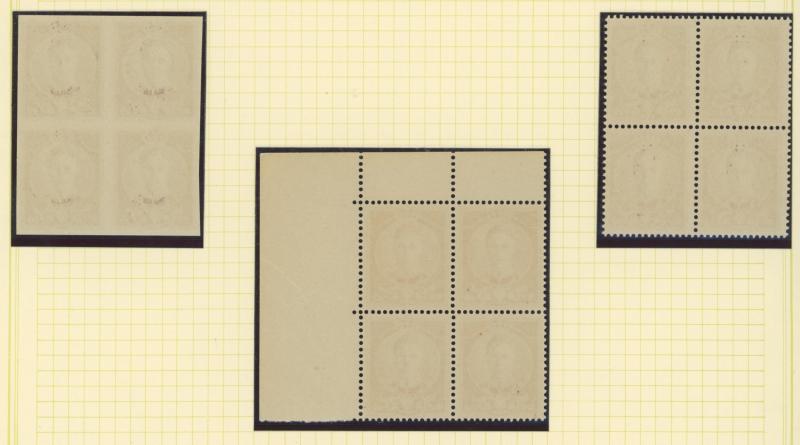 1936 KGVI Undenominated 'Dummy' Stamps imperforate plate proof block of 4 in violet and perforated plate proof blocks of 4 in