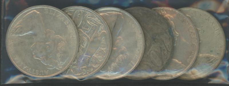 Group comprising KGV 1927 Canberra x3 one in PCGS holder graded 'MS64', KGVI 1947, QEII 1954 and 1956, condition variable,