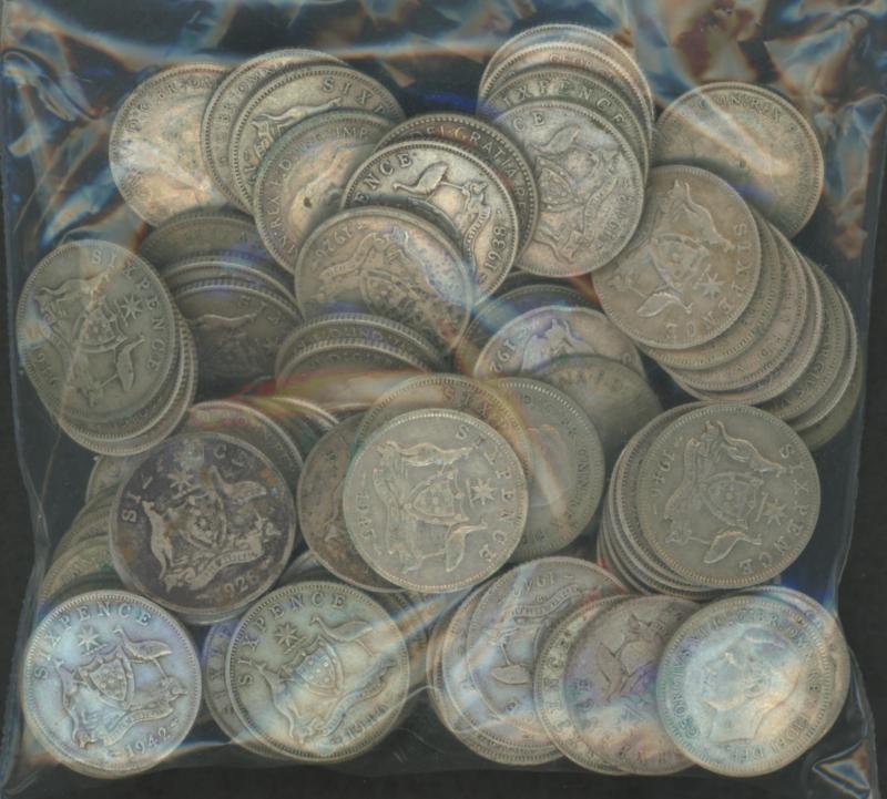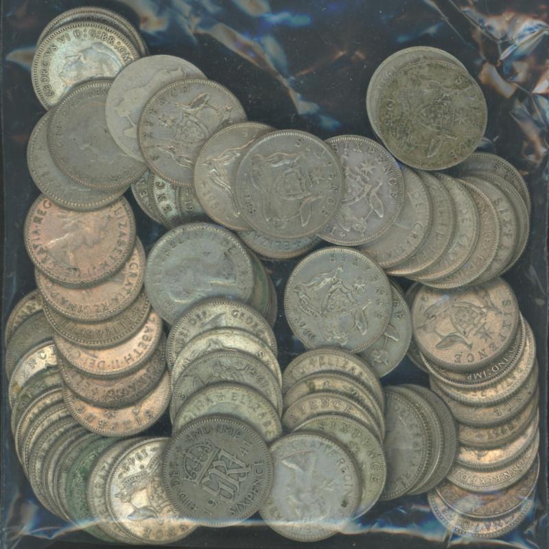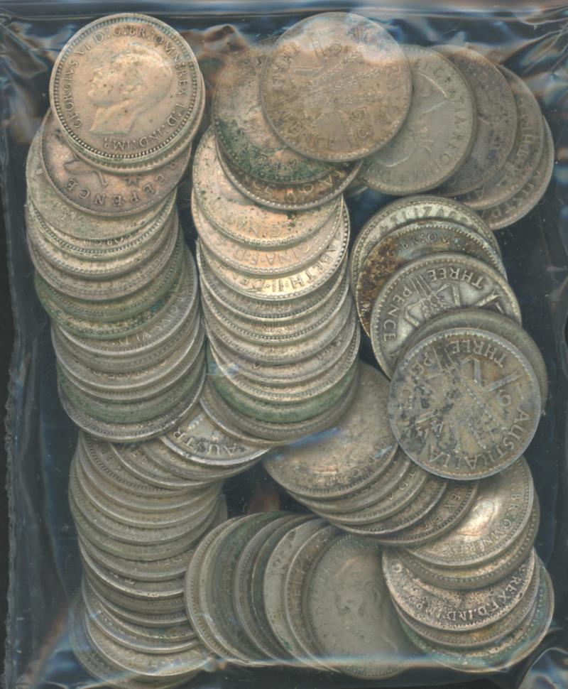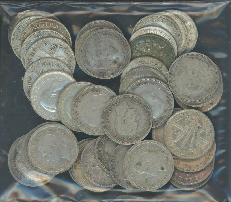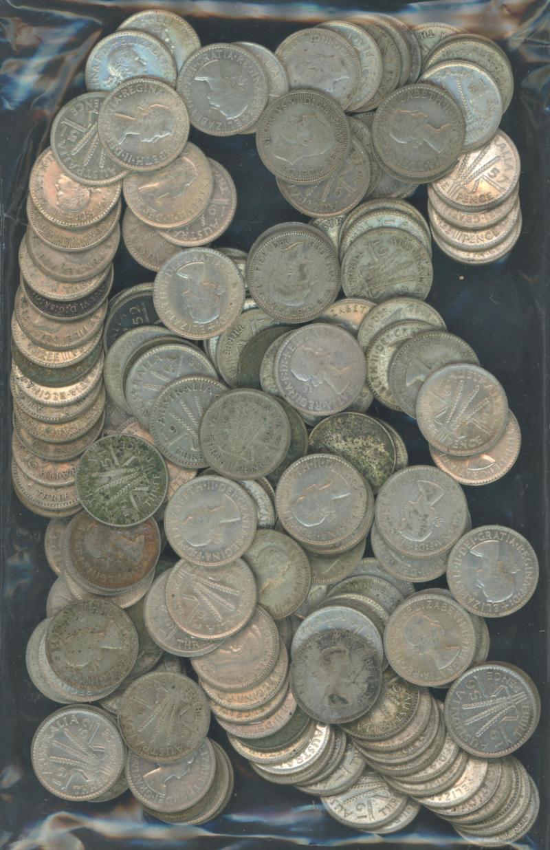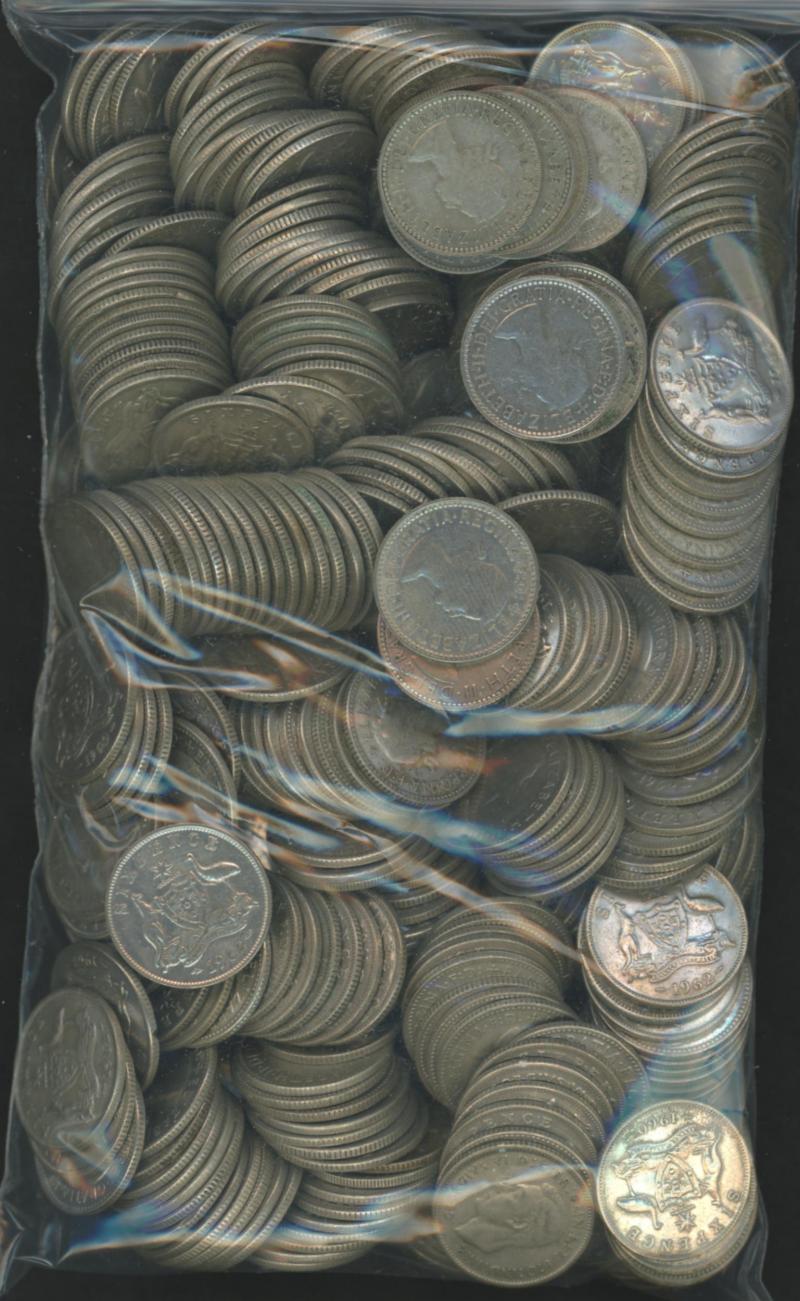 Threepence: 3d KGV to QEII in bags, weighs 0.31kg (pre-1946 weighs 60g), condition variable
