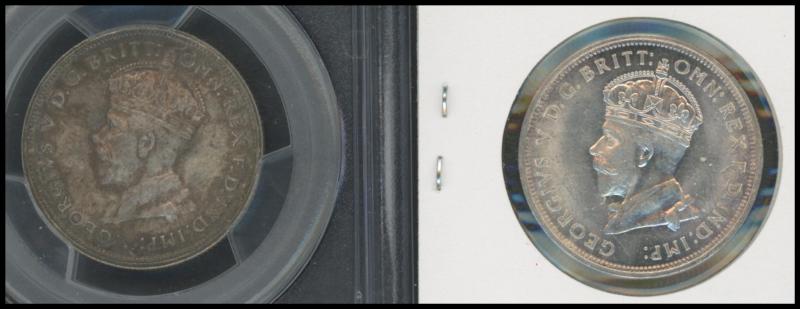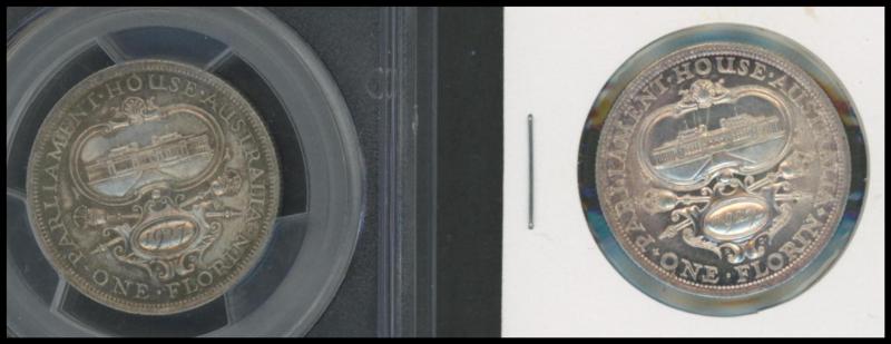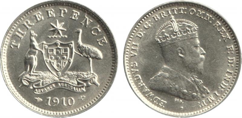 1910 KEVII 3d obv. hairline marks, well struck clear fields, Die Crack from Emu's Head to Rim, ChUnc/Gem, Cat $475 for Gem. (Image1) (Image2)