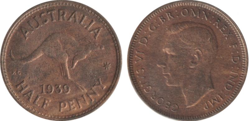 1939 KGVI ½d Kangaroo Reverse small contact on Kangaroo not detracting, Unc/ChUnc, Cat $1000 for ChUnc. (Image1) (Image2)