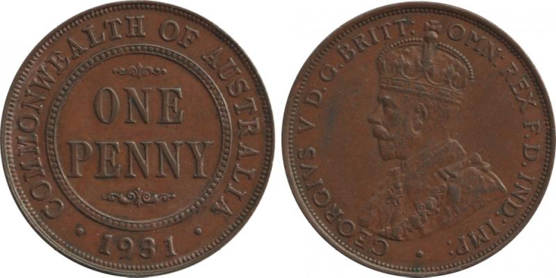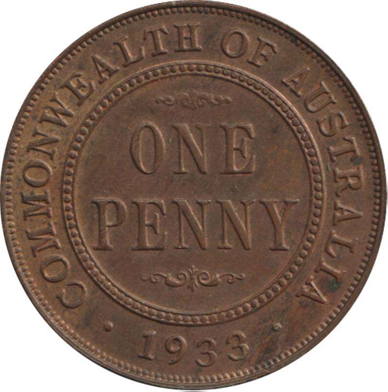 1933 KGV 1d, a couple of light bag marks, rev. with verdi-gris spot, otherwise Uncirculated, Cat $300. (Image1) (Image2)