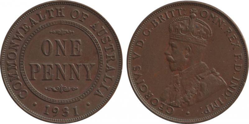 1931 KGV 1d Dropped '1' In Date, Six clear pearls two flat, and Centre Diamond, well struck reverse, gEF. (Image1) (Image2)