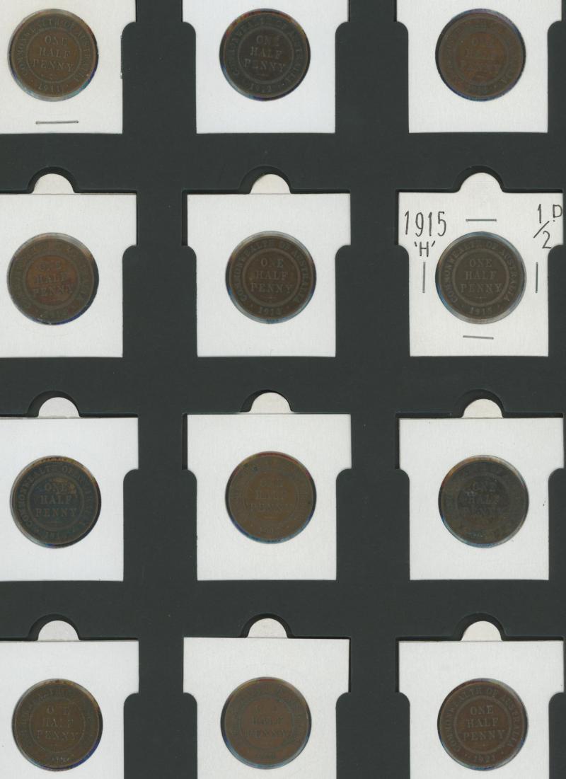 Pattern Above 'HALF' (R7), 1921 Thin Numerals in Date, Die Cracks, Cuds, etc, condition variable. (two white frames, 72 coins) (Image1)