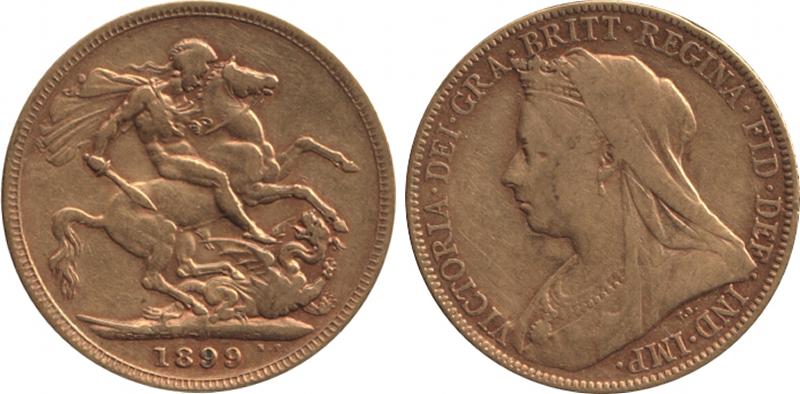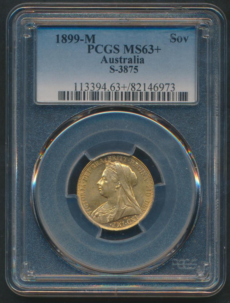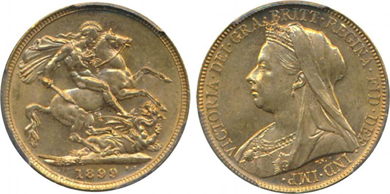 1899M QV Veiled Head St George reverse, Marsh 159, Spink 3875, in PCGS holder graded 'MS63+'. (Image1) (Image2)