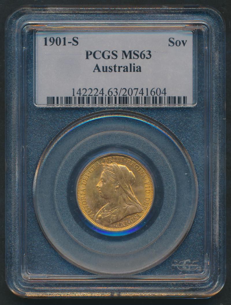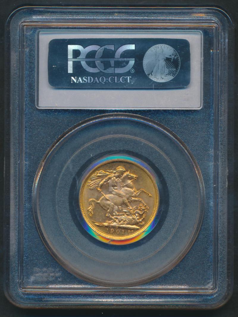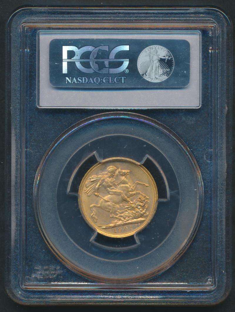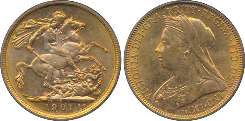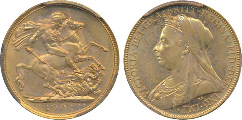 1901S QV Veiled Head St George reverse, Marsh 170, Spink 3877, attractive golden tone, in PCGS holder graded 'MS63'. (Image1) (Image2)