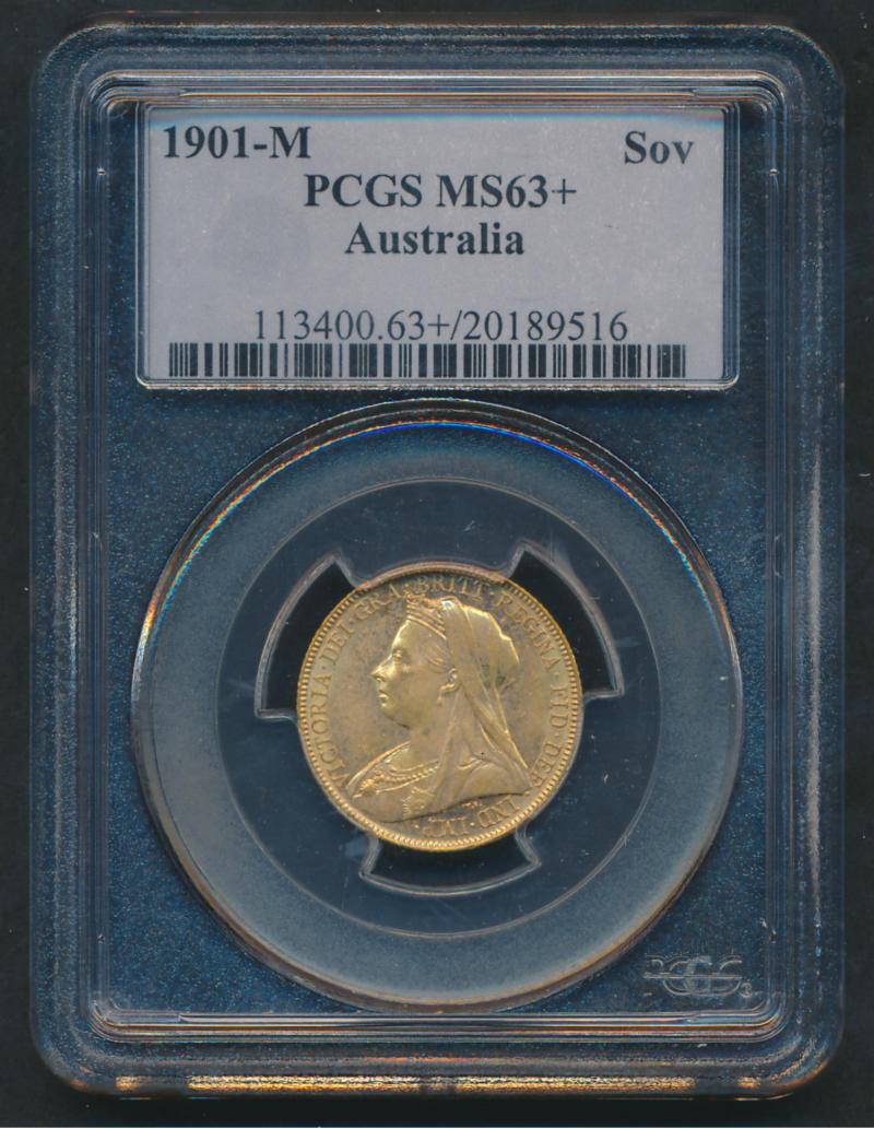 1901M QV Veiled Head St George reverse, Marsh 161, Spink 3875, in PCGS holder graded 'MS63+'. (Image1) (Image2)
