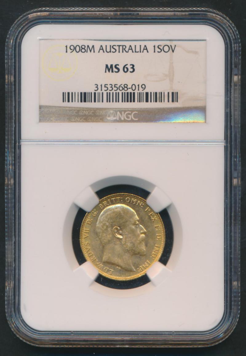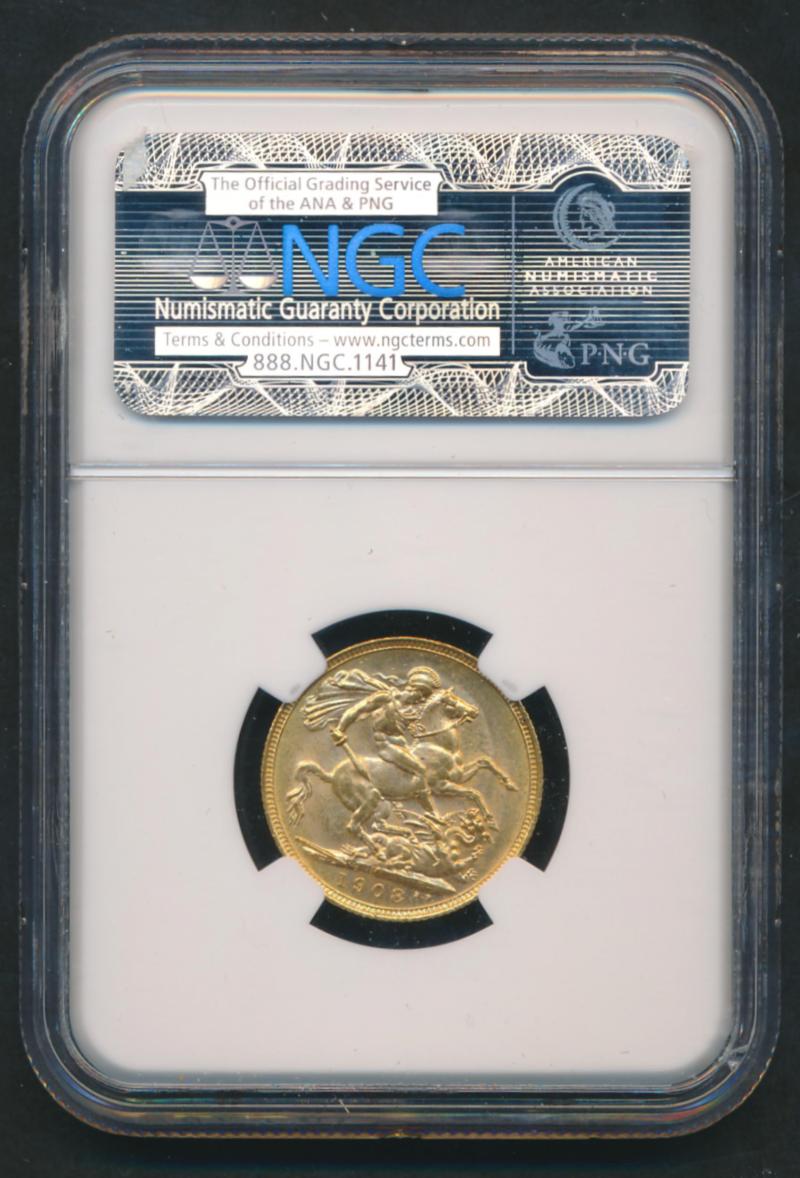1908M KEVII St George reverse, Marsh 192, Spink 3971, in NGC holder graded 'MS63'. (Image1) (Image2)