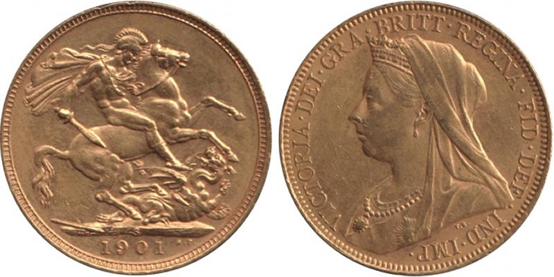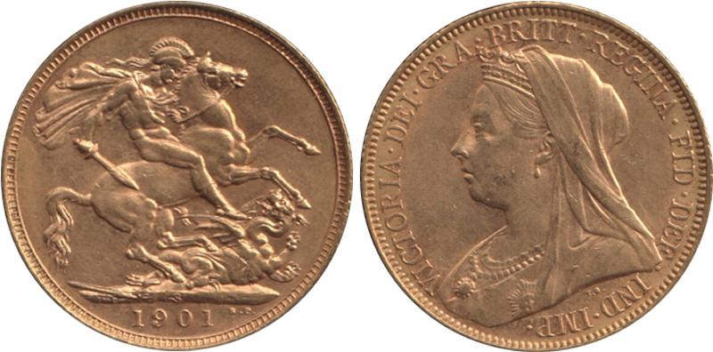 1901S QV Veiled Head St George reverse, Marsh 170, Spink 3877, aUnc/Unc. (Image1) (Image2)