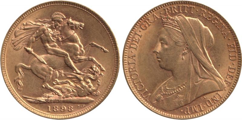 1898M QV Veiled Head St George reverse, Marsh 158, Spink 3875, aUnc/Unc. (Image1) (Image2)
