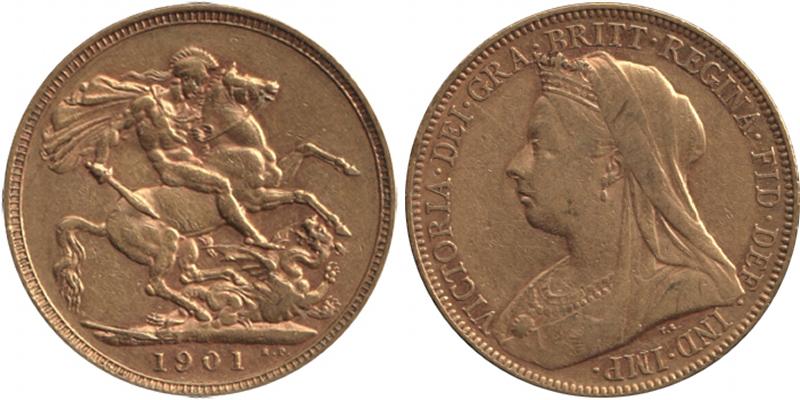1901M QV Veiled Head St George reverse, Marsh 161, Spink 3875, aVF. (Image1) (Image2)
