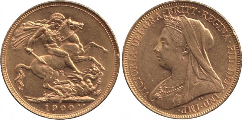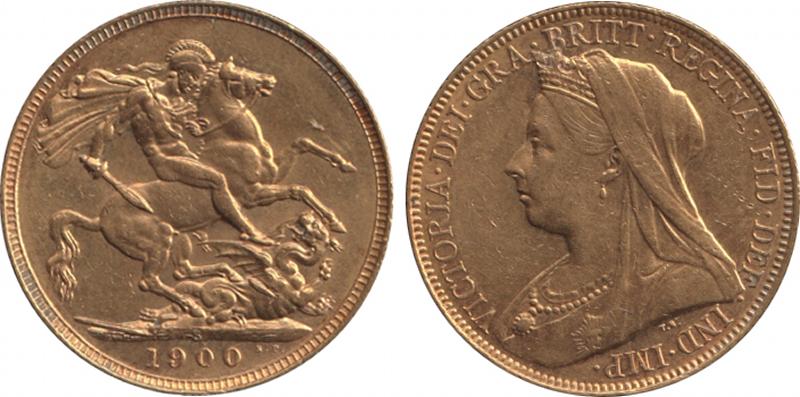 1900S QV Veiled Head St George reverse, Marsh 169, Spink 3877, VF. (Image1) (Image2)