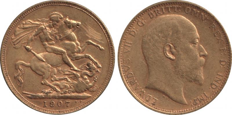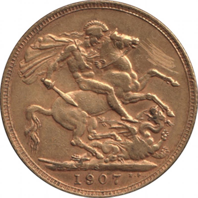 1907S KEVII St George reverse, Marsh 209, Spink 3973, scratches in reverse field, gFine. (Image1) (Image2)