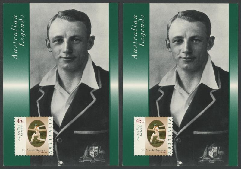 DON BRADMAN: 1997 Australia Post 'Australian Legends - Don Bradman' maxi-cards (6), with four signed by Don Bradman, Very Fine.