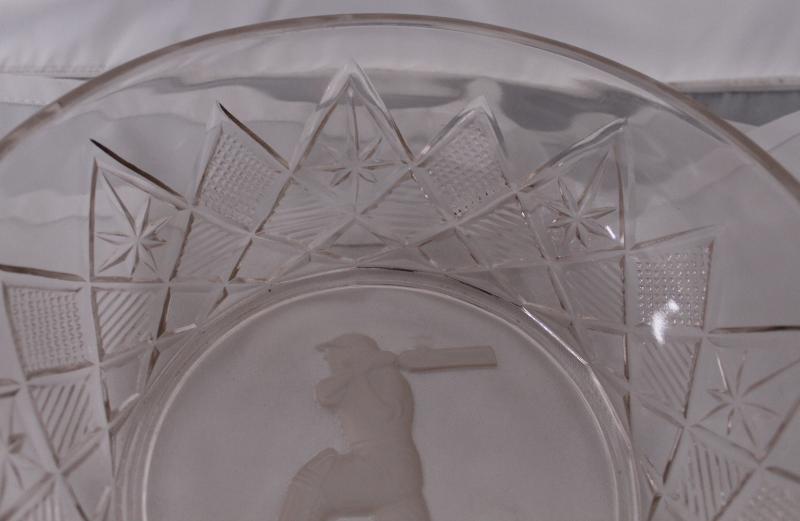 DON BRADMAN: 'DON' glass fruit bowl with attractive scene of Don Bradman batting impressed into base, circa 1930, Type 2 with small