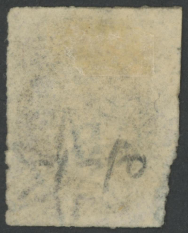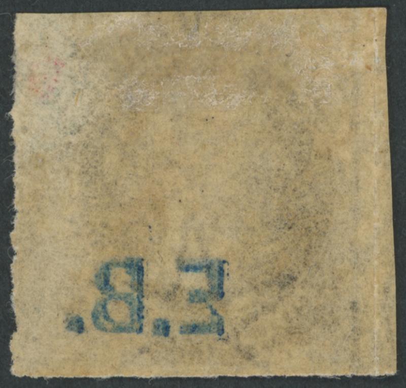 the left of the sheet with marginal vertical watermark line at left, rouletting on three sides & cut from the sheet at the top just into the design, large-part gum, Cat £1250. Rated RRRR+. Ex Rev James Mursell and Don Pearce: sold for $2395 (Sale 247
