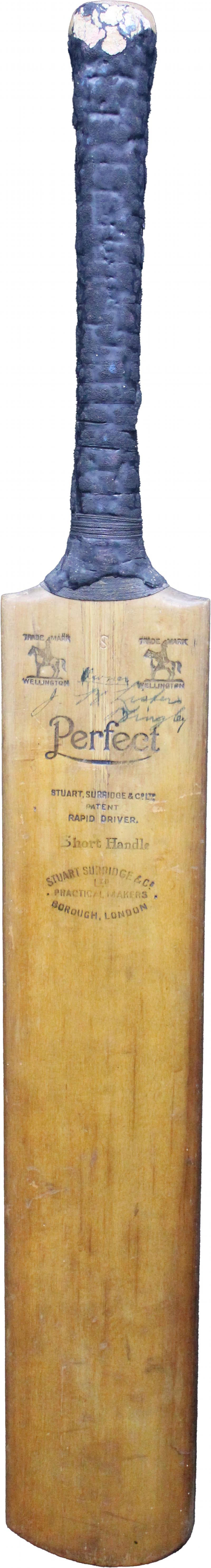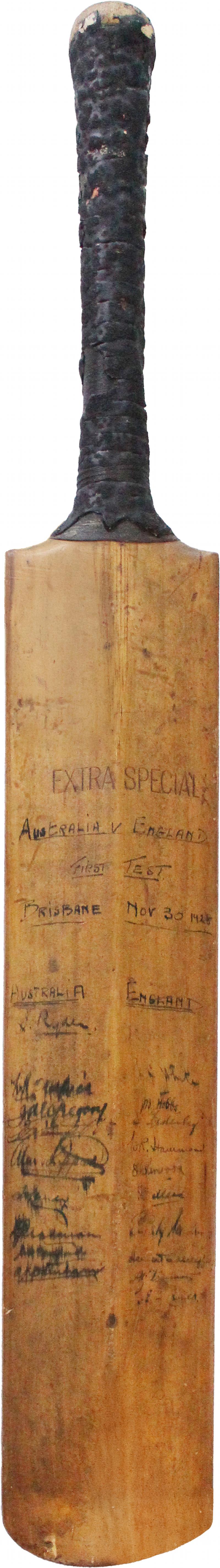 DON BRADMAN - FIRST TEST: 'Stuart Surridge & Co' cricket bat endorsed on reverse 'Australia v England, First Test, Brisbane Nov