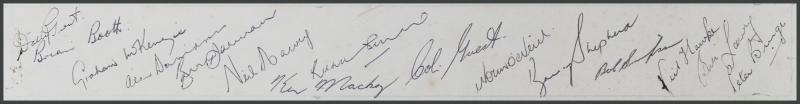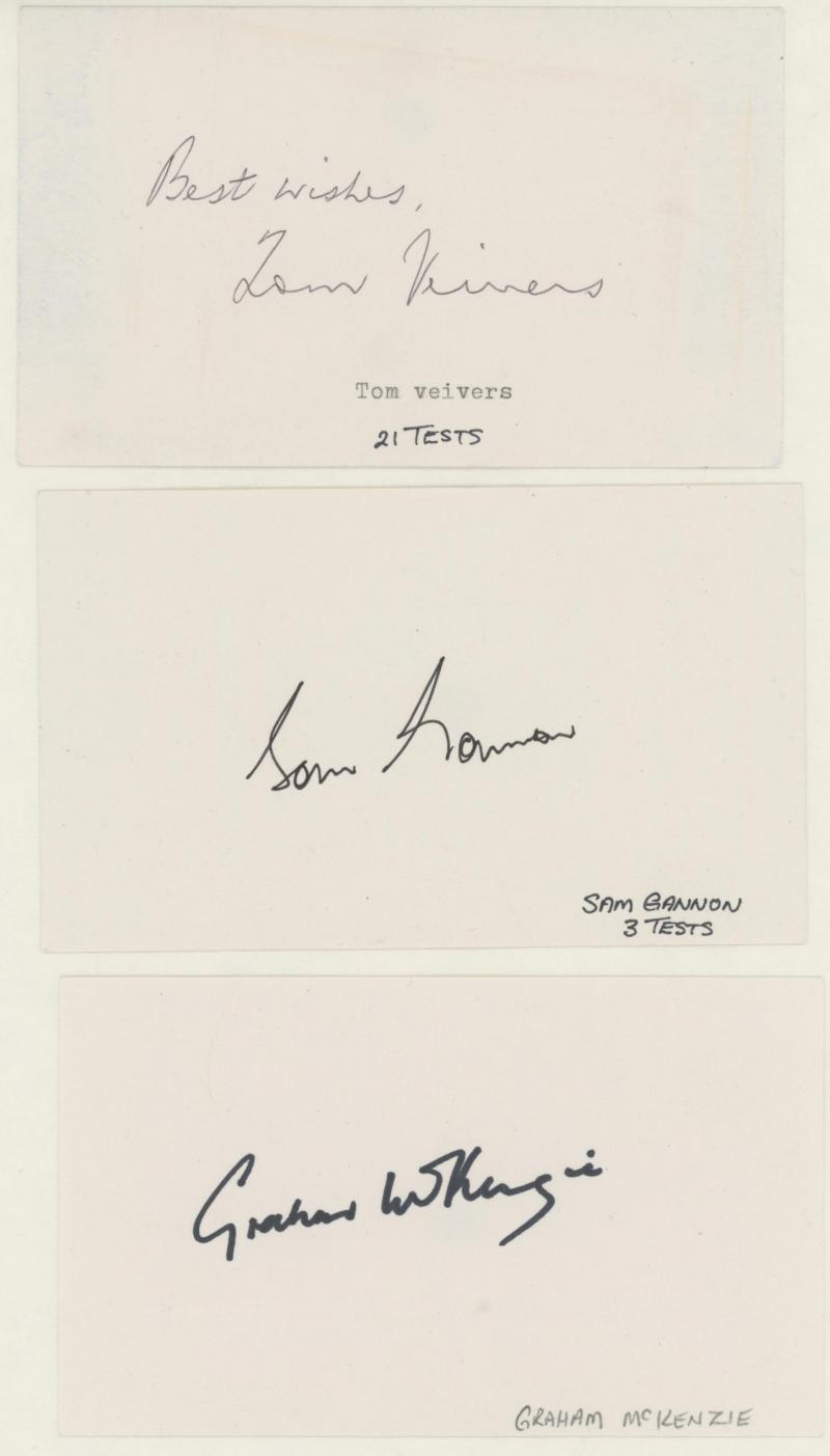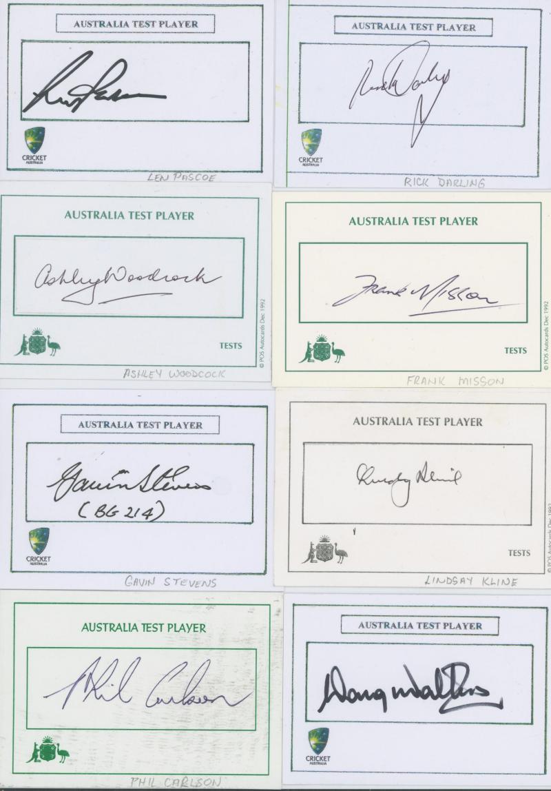 Autographs Large cards (5 - each about 50x22cm) signed by Australia 1952-63, 1962-63, 1975-76, 1980-81 & 1990-91, with a total of