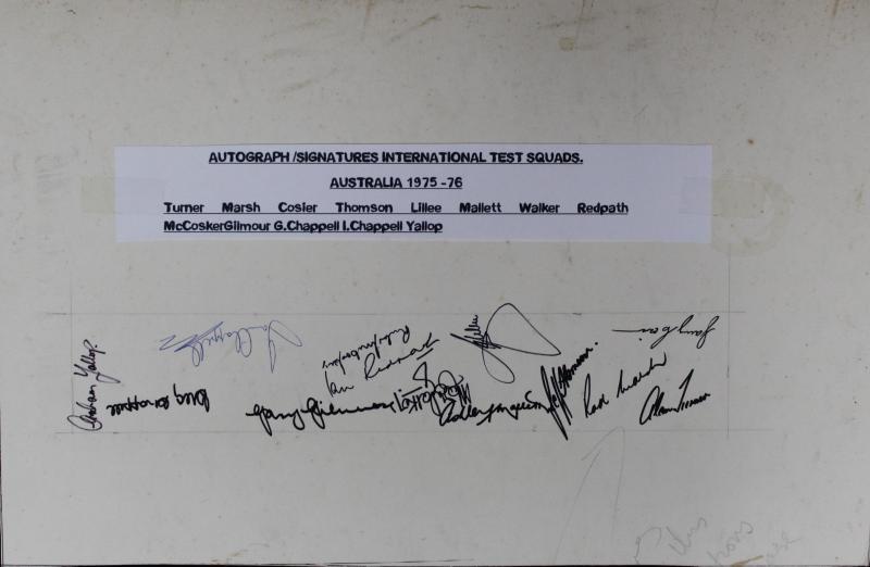 70 signatures including Richie Benaud, Alan Davidson, Neil Harvey, Bill Lawry, Ian Chappell, Dennis Lillee, Allan Border, Doug Walters, Dean Jones & Steve Waugh.