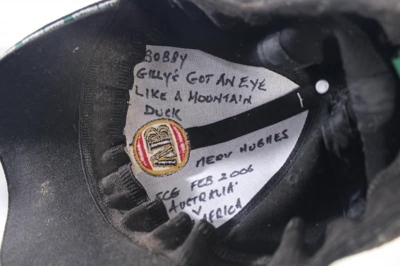 another match-worn by Stuart MacGill); Brad Hodge's Victoria Cap from 2007-08 Pura Cup Final; VB Cap signed by Merv Hughes (SCG Feb 2006 Australia v South Africa); plus other caps (4), mainly Fair/Fine condition. Ex SCG 'Roomy' Bobby Barter.