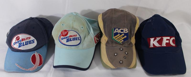 Clothing Caps group comprising KFC/Cricket Australia cap; ACB cap; NSW Speedblitz Blues caps (4 - one from 2006-07 Pura Cup Final,