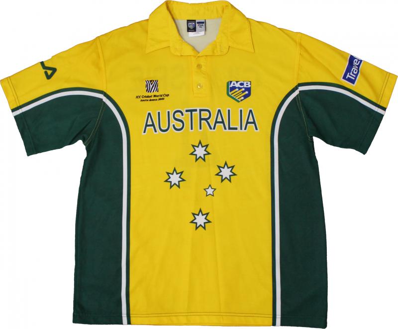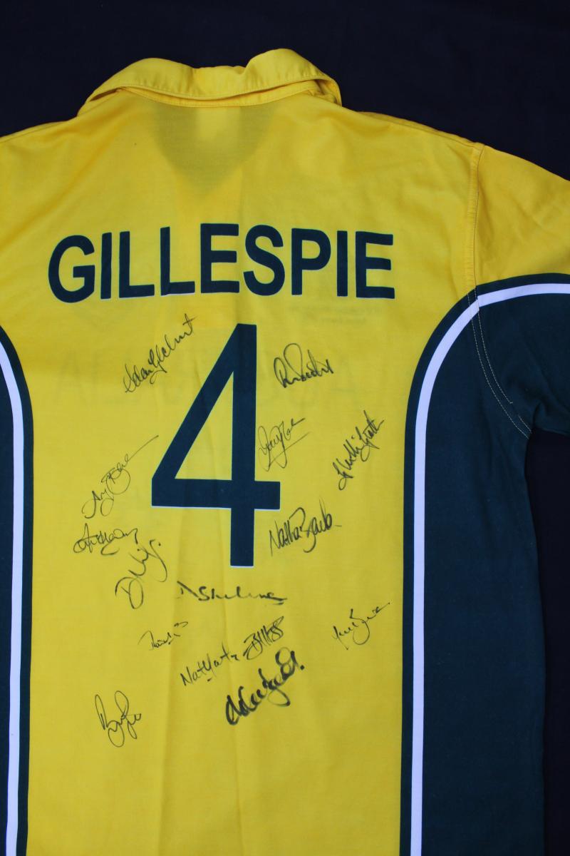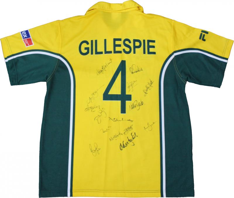 Clothing 2003 Australian ODI Shirt with 'GILLESPIE' & '4' on reverse, ACB logo & 'ICC CRICKET WORLD CUP, SOUTH AFRICA 2003' on