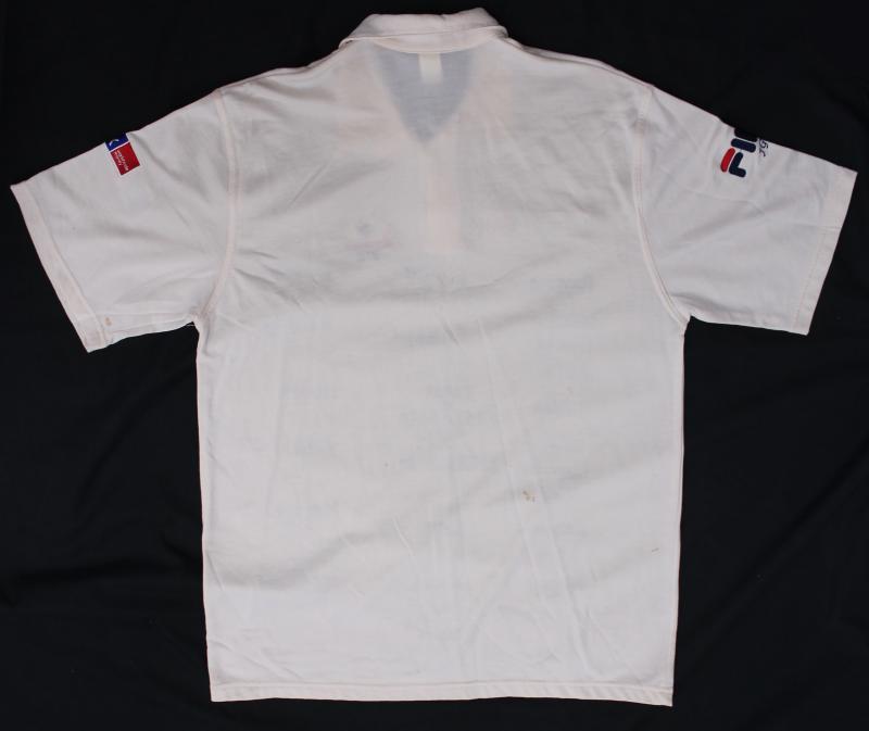 Clothing 2004 Australian Test Shirt with embroidered CA Coat-of-Arms, '370', and Travelex & FILA (with JG below) logos, match