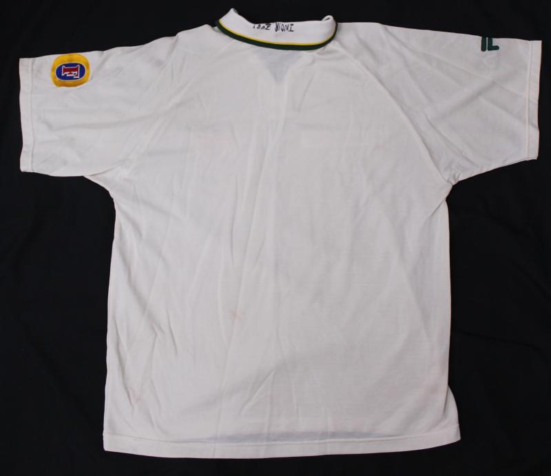 Clothing 2001 Australian Test Shirt with embroidered Australian Coat-of-Arms and Kelvinator & Fosters logos, match worn with