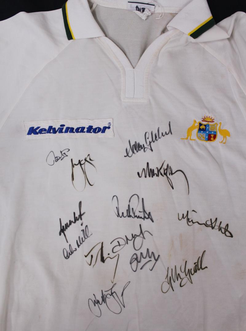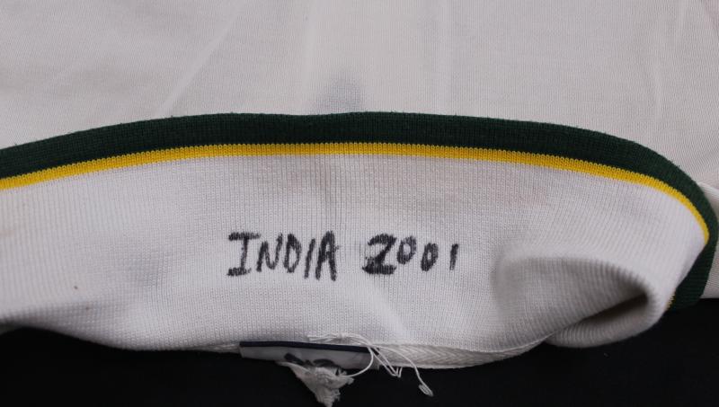 'INDIA 2001' on collar & 'DIZ' on tag with 13 signatures of the Australian Team including Steve Waugh, Matthew Hayden, Glenn McGrath & Jason Gillespie. Ex Jason Gillespie collection. (Image1) (Image2)