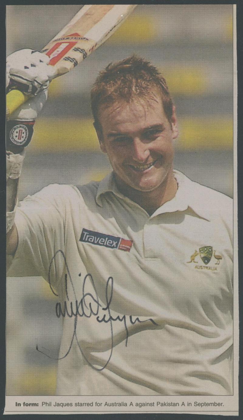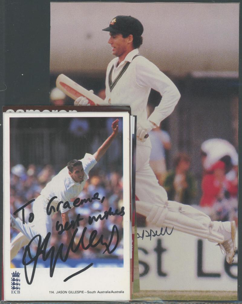 front, with 15 signatures on reverse including Ricky Ponting, Adam Gilchrist, Andy Bichel & Nathan Hauritz. Ex Jason Gillespie collection.