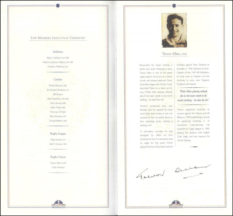 Autographs 2000 'Sydney Cricket Ground Life Members Induction Ceremony' booklet with 16 signatures including Don Bradman, Richie