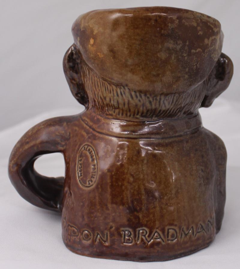 DON BRADMAN: Bendigo Pottery "Sir Donald Bradman" caricature jug, very attractive with brown glaze, 15cm high, Fine condition. (Image1) (Image2)