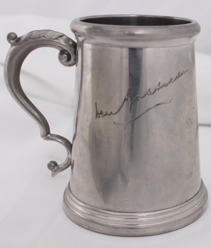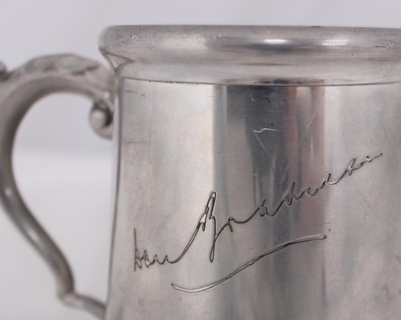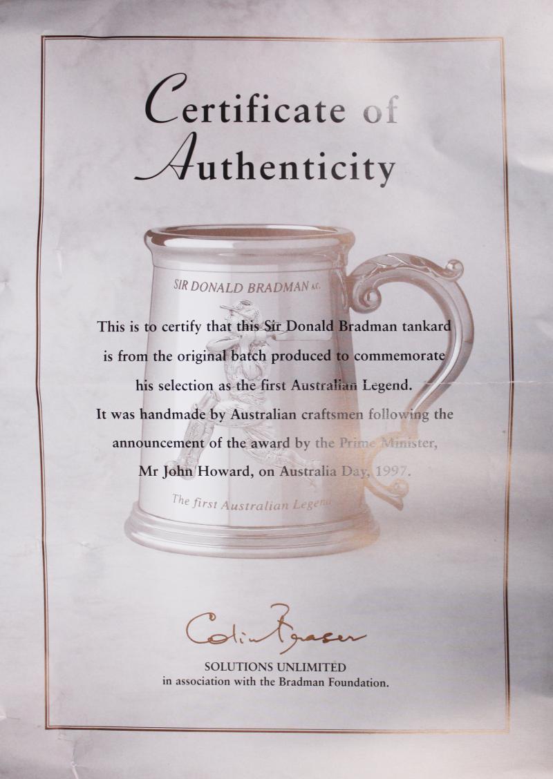 DON BRADMAN: 'Sir Donald Bradman AC - The first Australian Legend' pewter tankard, 13cm high, Fine condition. (Image1) (Image2)