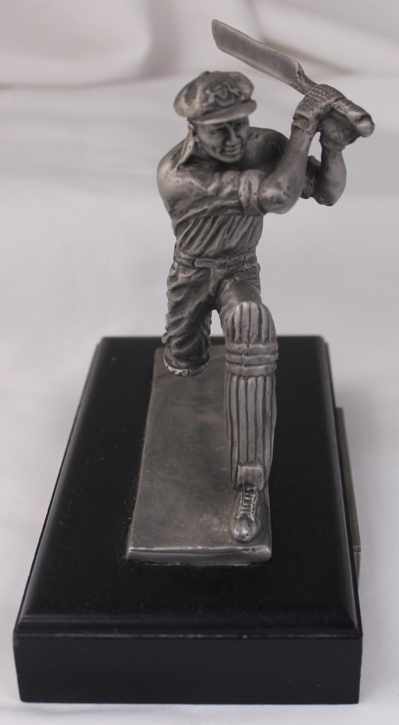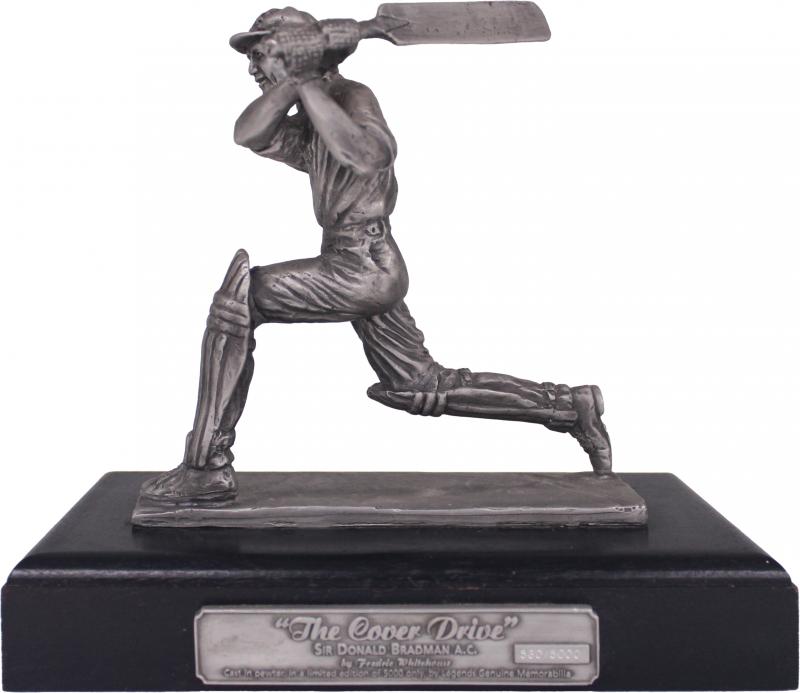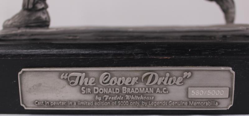 DON BRADMAN: pewter statuette 'The Cover Drive - Sir Donald Bradman AC' by Frederic Whitehouse, 18cm high, Fine condition. (Image1) (Image2)
