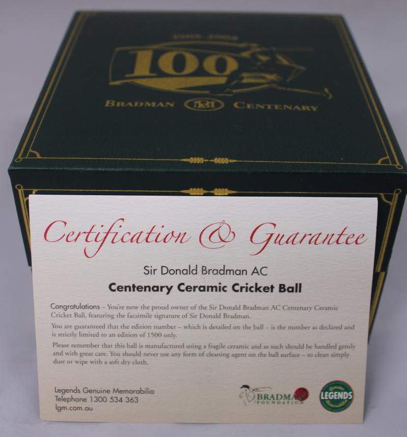 DON BRADMAN: 'Sir Donald Bradman AC Centenary Ceramic Cricket Ball' with facsimile signature, limited edition 375/1500, Fine