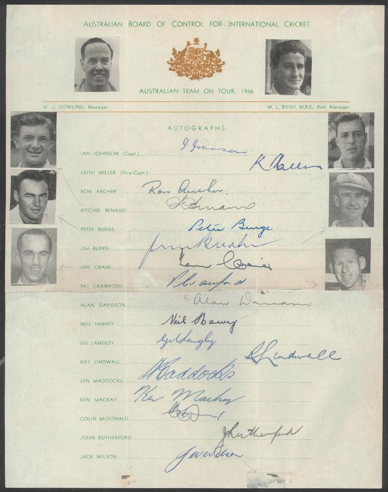 Team Sheets Australian Team official team sheets for 1953 Coronation Tour (tone spots), 1956 (2 - one mounted with team postcard),